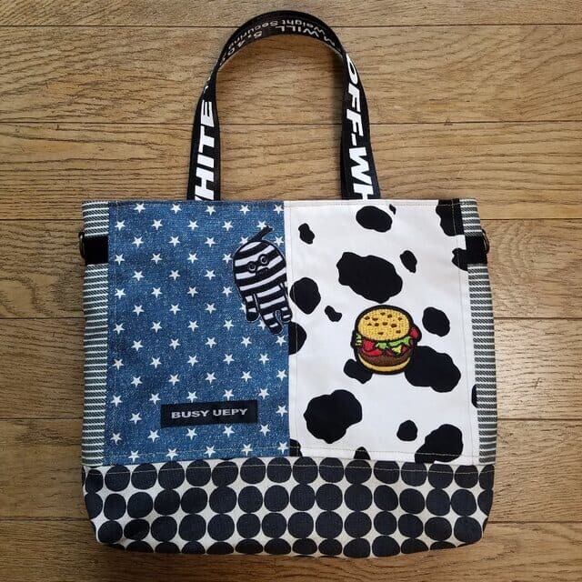 いろんな布を合わせて、楽しいかばんに仕上げてます