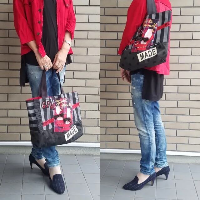 Mサイズ 赤い靴ストライプバッグ