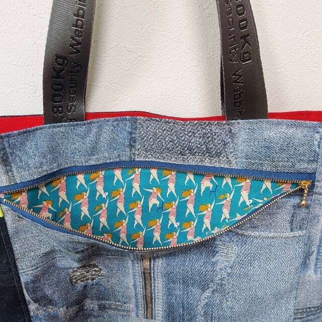 ベース部分は、皮風プリントのデニム+ダメージデニムプリント
